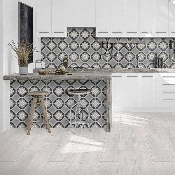 Taking the world of wood look porcelain and fusing it together with the alluring appearance of encaustic tile, the Castaic Starwood Blue Porcelain Tile contains a fluid pattern design that plays with color and texture. The variegated palette on the body of the tile stars the on-trend ashy blue, creating a stand-out design. Complete with the look of real wood grain, this is one piece that will turn heads and secure a style-worthy place in any room it’s laid.