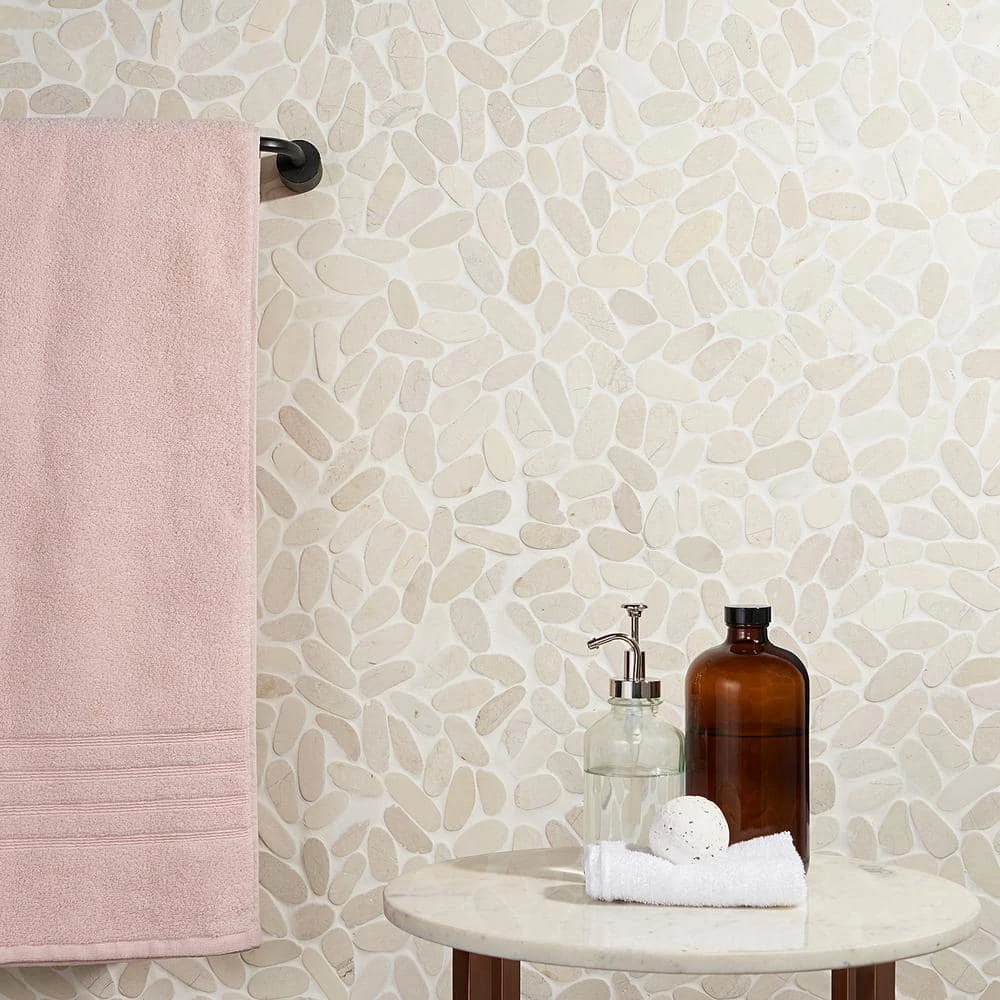 Heighten your indoor or outdoor designs with the Countryside Mosaic. This 12 in. x 12 in. Mosaic is made from sliced oval stones that give off a cobblestone feeling with a touchable texture. With its organic, au natural look, it’s perfect to use on shower floors, decks, or pools (Or anywhere you want to create an outdoorsy appearance, really).