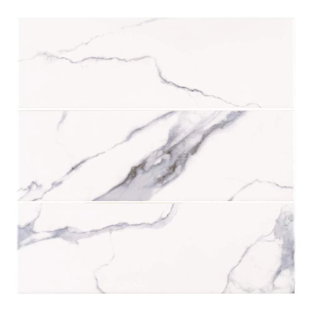 Upgrade your kitchen or bathroom with the stunning Glossy Ocean 4 in. x 12 in. Ceramic Field Tile. The glossy white ceramic tile features a unique Carrara marble-like pattern to create a luxe feel in your home at an affordable price. Perfect for creating subway, offset, herringbone patterns and more. Combine with other mosaics and field tiles to create impressive installations. For best installation results, use white polymer-modified thinset.