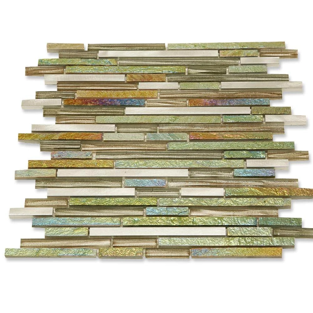 The Paradise Eden 12 in. x 12 in. x 8 mm Glass Mosaic Tile is a stunning combination of multicolored slate, frosted glass and etched copper deco gives any room a modern and contemporary ambiance. Add a pop to any room with these beautiful tiles that are versatile, unique and great to use for a kitchen backsplash or fireplace. Dare to be different with the Eden Tile from our Paradise Collection. The mesh backing not only simplifies installation, it also allows the tiles to be separated which adds to their design flexibility. Sample tile OMSID: 206154515.