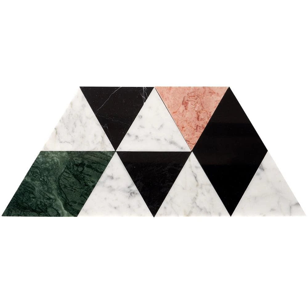 Welcome a whole new level of classy into your space with the Prisma Collection. This startlingly handsome marble mosaic tile trio is sure to shake things up. Sophisticated marble meets modern day colors to create a coveted statement piece. Pair with darker furniture or matte fixtures to make it really pop. Available in 3 colorways.