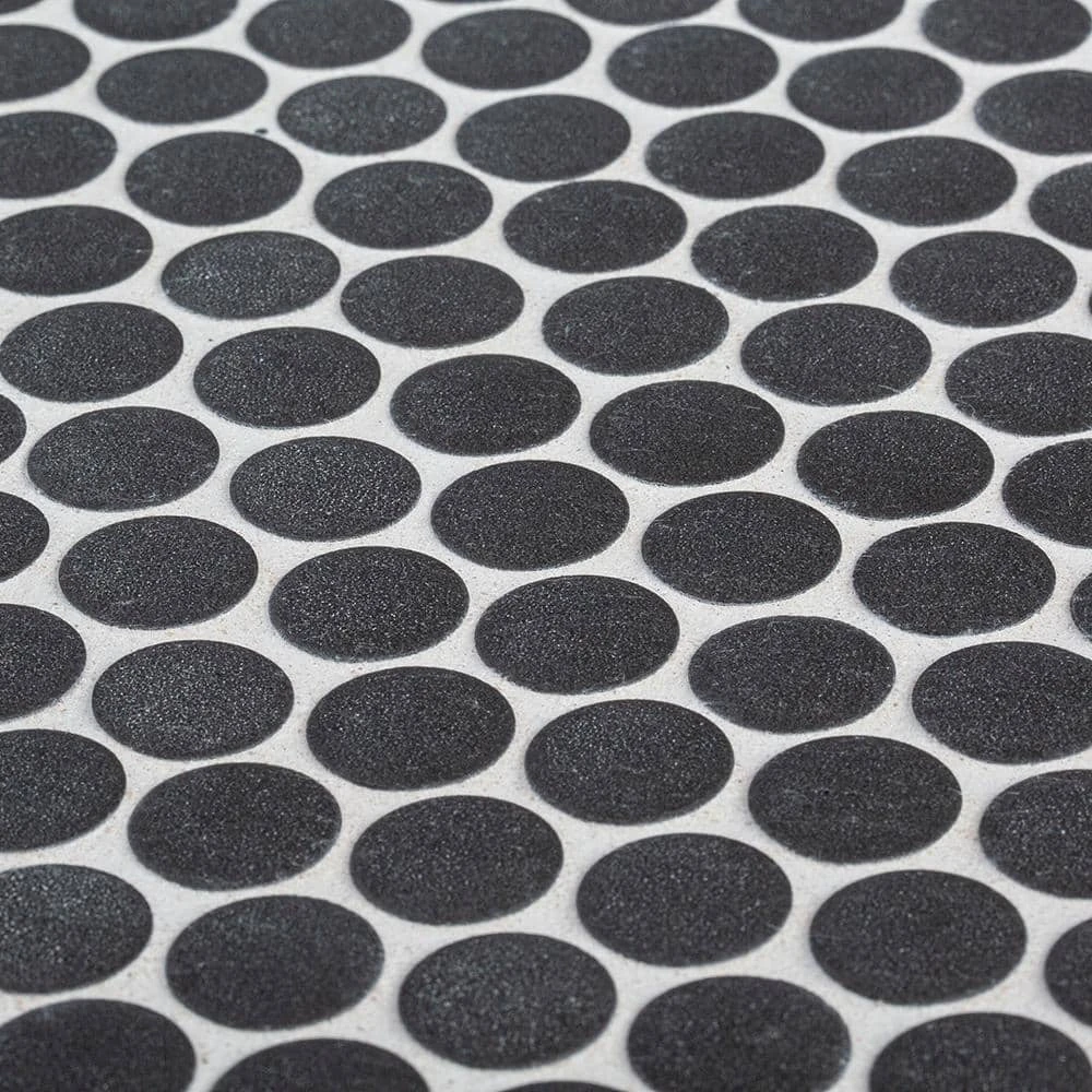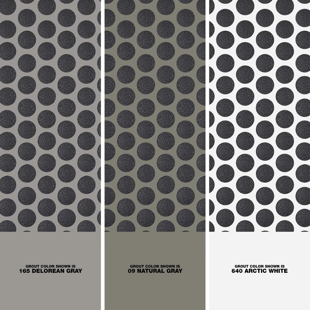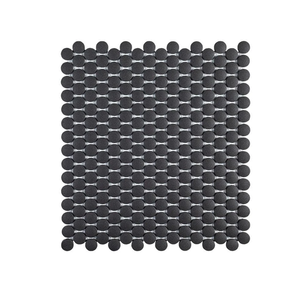 Shadow Mountain Gray 11-3/8 in. x 12-1/4 in. Porcelain Mosaic Tile combines old world charm with contemporary design. Classic penny round mosaic updated in a grey color offers unlimited design possibilities. Perfect for an array of styles, from traditional to modern. Combine with other mosaics and field tiles to create impressive installations. For best installation results, use white polymer-modified thinset.