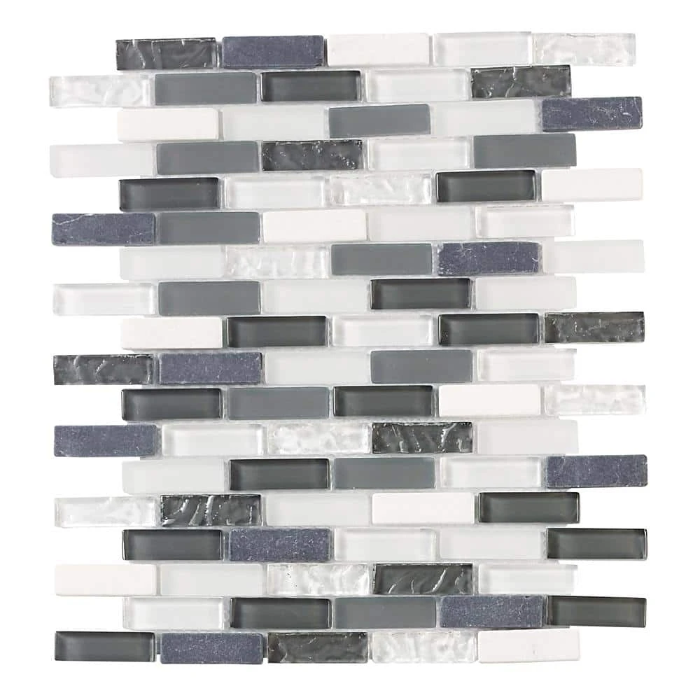 Silver Tradition Mini Brick 9-3/4 in. x 11-3/4 in. Glass and Slate Mosaic Tile adds unique style to your kitchen or bathroom. This white and gray mosaic features an array of shades as well a combination of glass and slate pieces. The smooth and textured finishes add depth to any installation. Recommended for kitchens, backsplashes, showers, accent walls, tub surrounds and vanities. For best installation results, use white polymer-modified thinset and non-sanded grout.