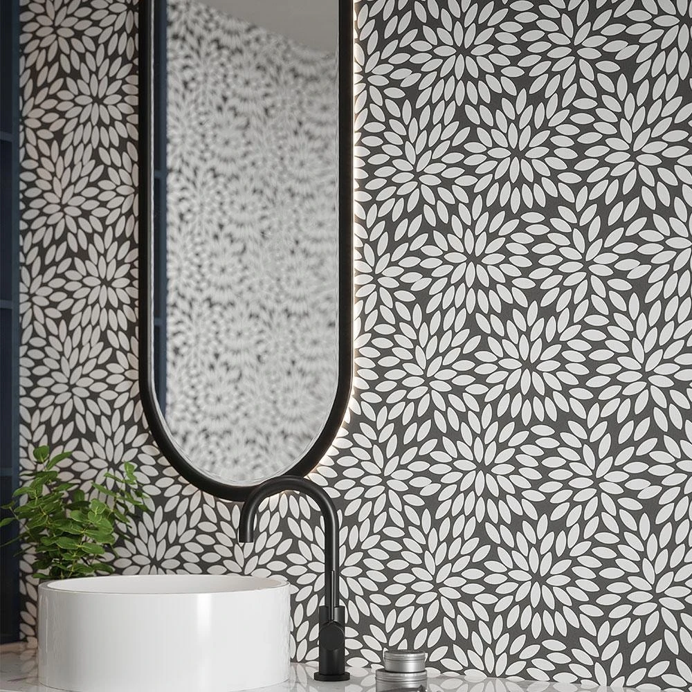 Let your style bloom with our Tea Party White mosaic. This fun mosaic features Thassos marble cut into a petal pattern to create a delicate and fresh look in your home. The natural stone comes in a honed finish and has a slight sparkle that occurs naturally. The Thassos marble features minimal veining for a clean look. Perfect for creating stunning large installations or in combination with other mosaic and field tiles for intricate designs.