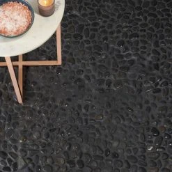 3D Pebble Rock Jet Black 12 in. x 12 in. x 10 mm Marble Mosaic Floor and Wall Tile by Ivy Hill Tile