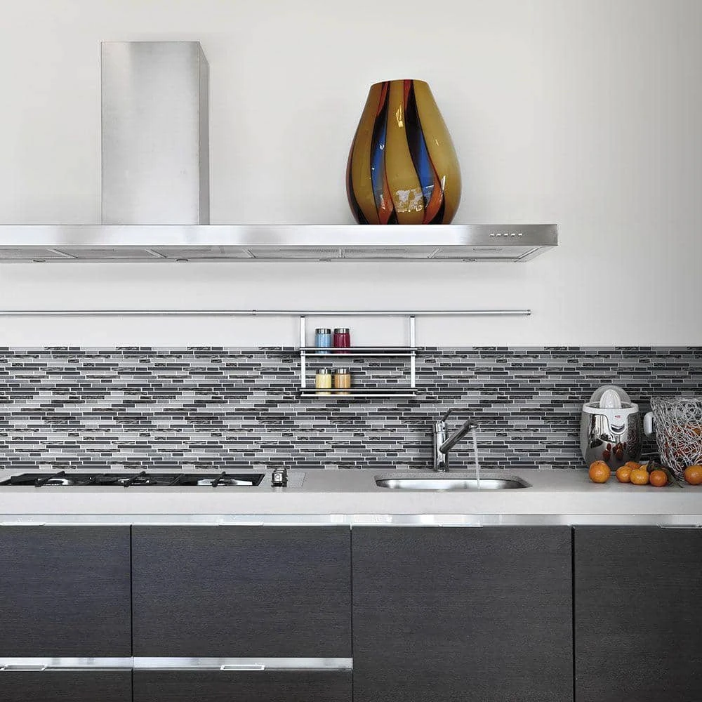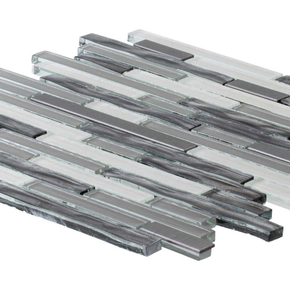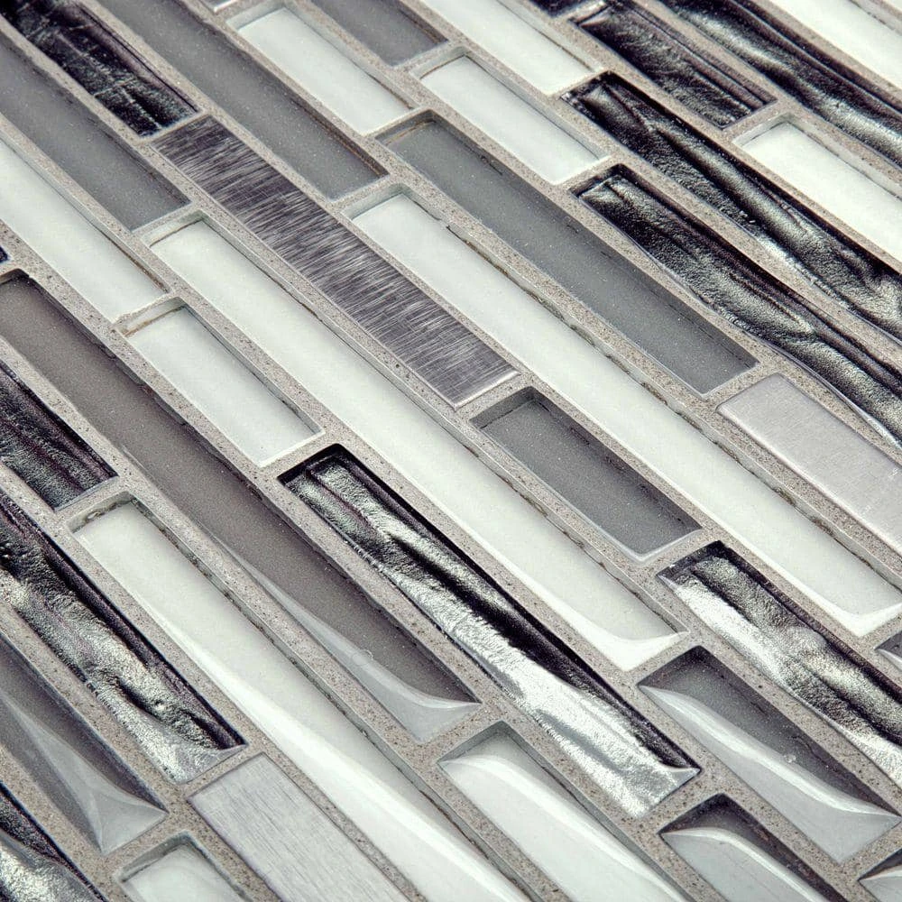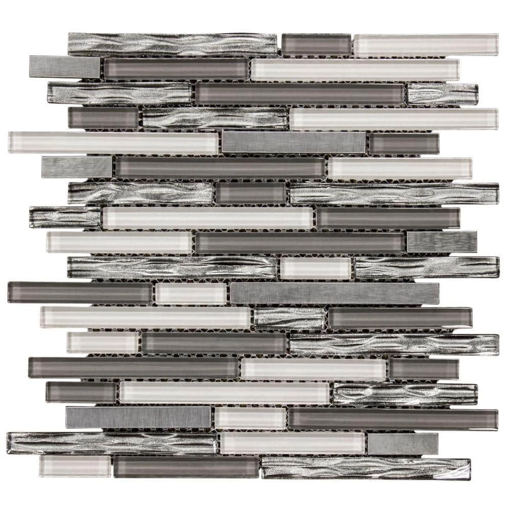 Use Waves of Grey 11-1/2 in. x 11-7/8 in. Glass and Metal Mosaic Tile to add dramatic style to your bathroom or kitchen. This mosaic features a combination of glossy glass pieces in an array of grey shades and brushed silver metal pieces on a mesh-mounted sheet. Recommended for backsplashes, bathrooms, kitchens, and accent walls. Combine with other mosaics and field tiles to create impressive installations. For best installation results, use white polymer-modified thinset.